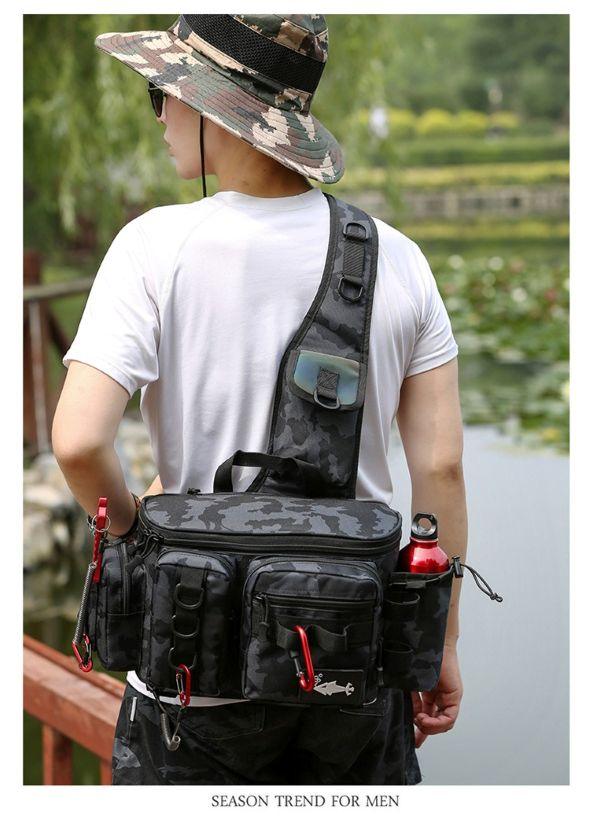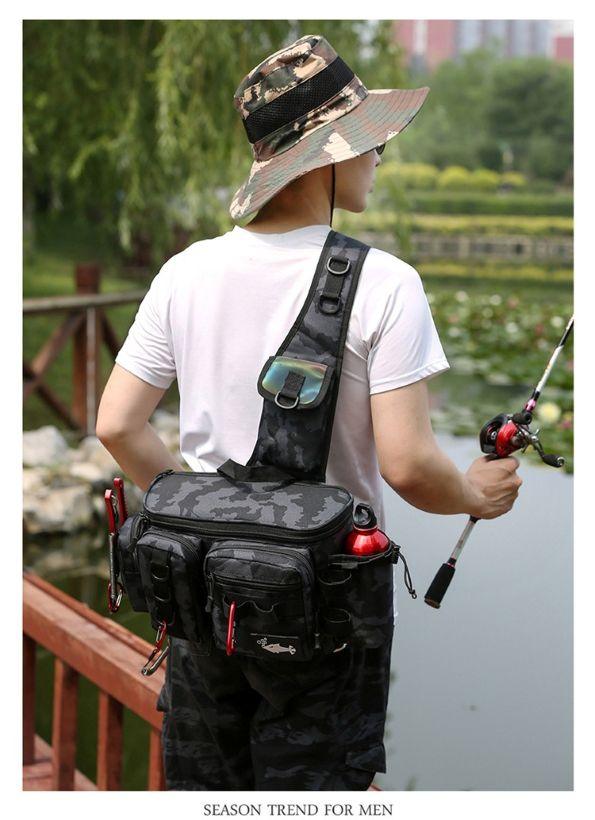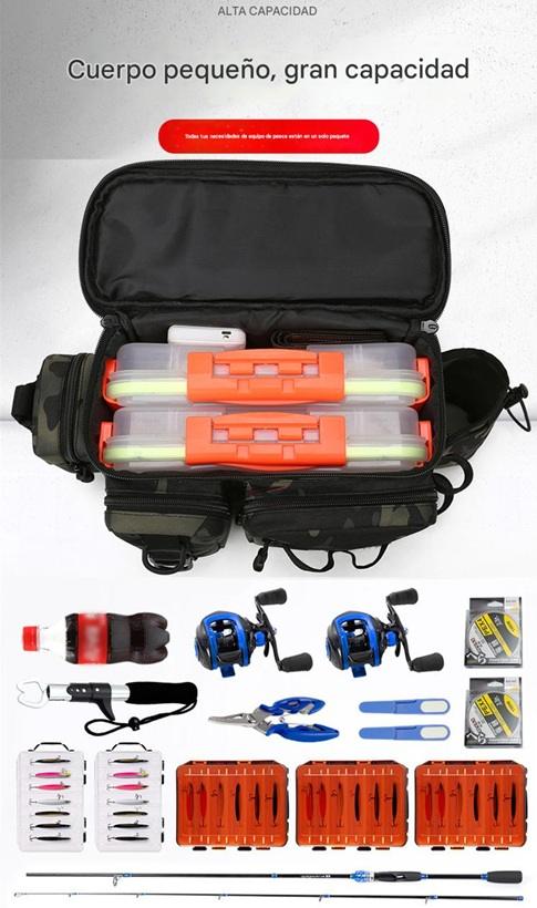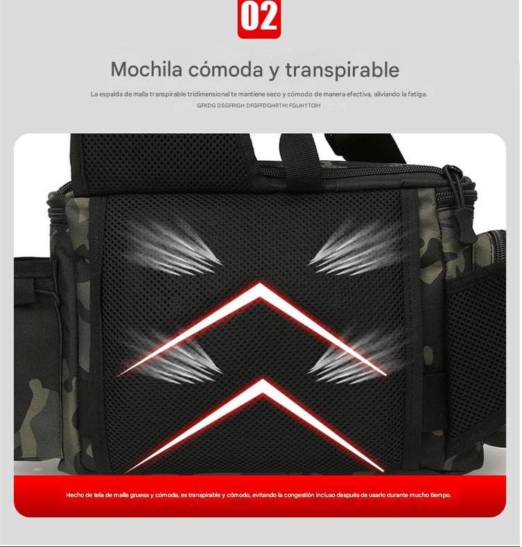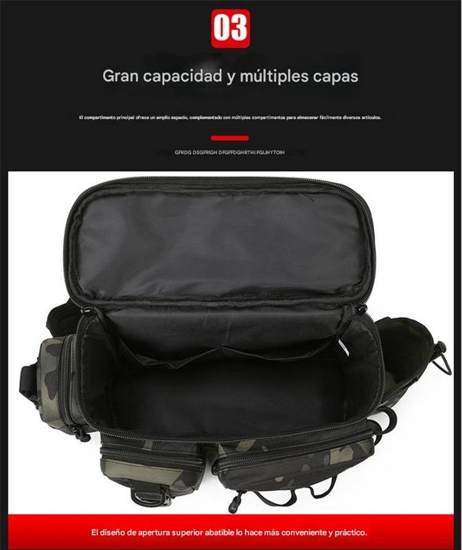 - Organización posta: Tiene montones de compartimentos de distintos tamaños, así que podés guardar tus cajas de señuelos, carretes, anzuelos, herramientas y hasta la botella de agua, cada cosa en su lugar. Nada de andar rebuscando en el fondo de un bolsón.
