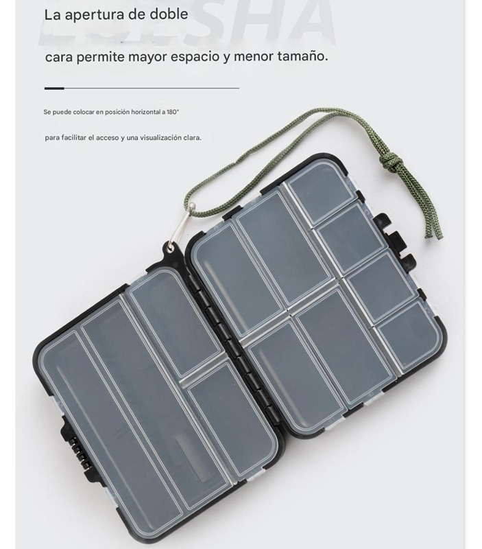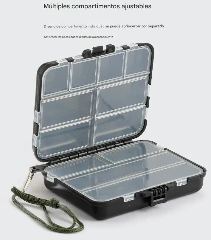 ✔️ Máxima Organización sin Mezclas: Las 12 tapas individuales son la clave. Podés dedicar cada compartimiento a un accesorio diferente (anzuelos del #8, esmerillones, mosquetones, etc.) y viajar con la seguridad de que todo llegará en perfecto orden.