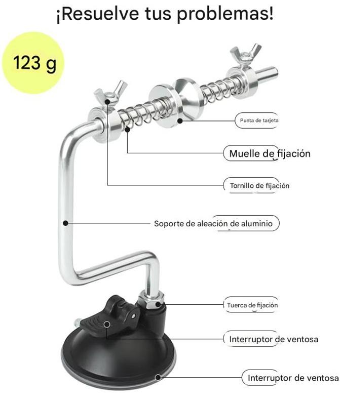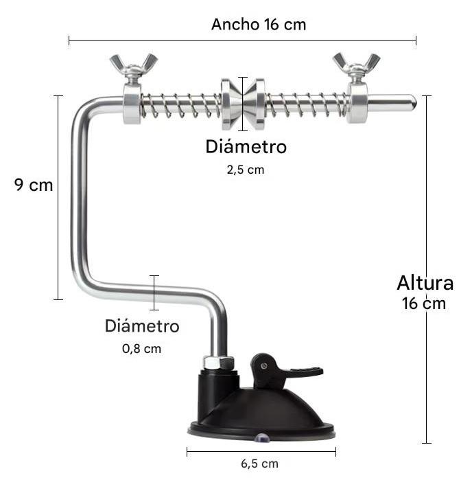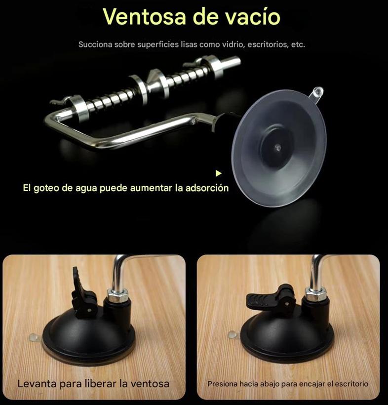 Elegí la versión con ventosa, que se fija firme en cualquier superficie lisa, o el modelo con broche, ideal para sujetar en el borde de una mesa.