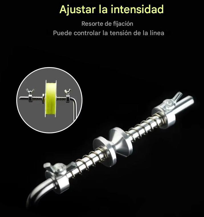 Fabricado completamente en metal, te permite cargar tu reel con la tensión justa gracias a sus resortes ajustables a ambos lados.