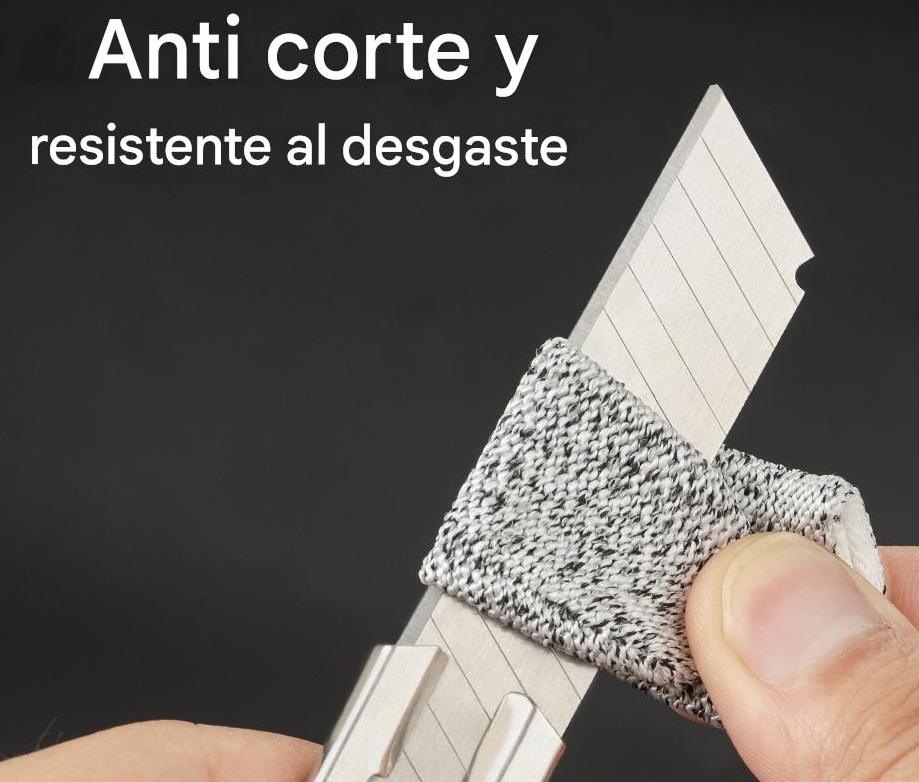 Un tejido de alta tecnología, usado en guantes de seguridad industrial. Es ultra resistente al desgaste, al corte y a la tracción, pero al mismo tiempo liviano y flexible. Incluso mojado sigue funcionando igual de bien, a diferencia del cuero que se endurece o se deforma.