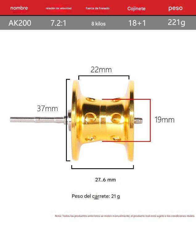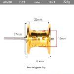 Kallio AK200 Silver Baitcaster -7.2a1-10kg de freno- carrete cnc V
