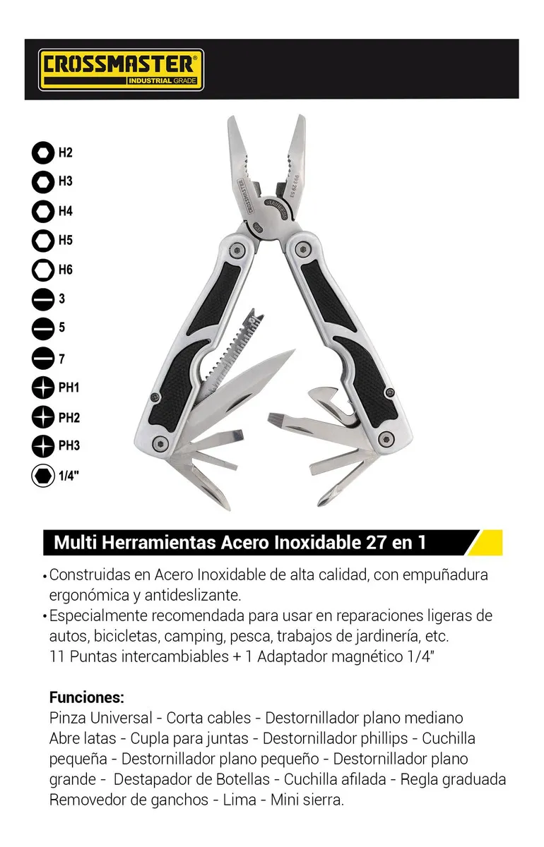 Pinza Multi Herramienta Acero Inoxidable 27 en 1 Crossmaster 9932953
