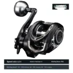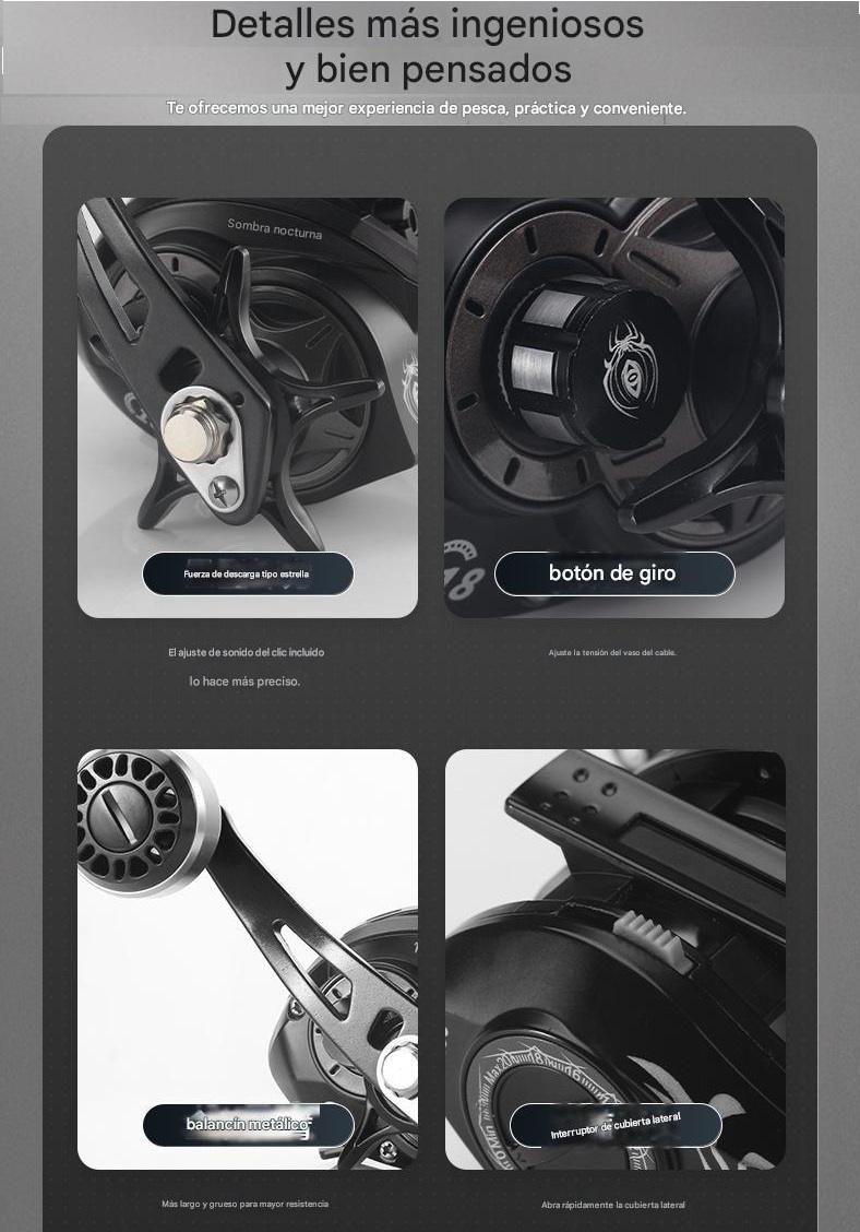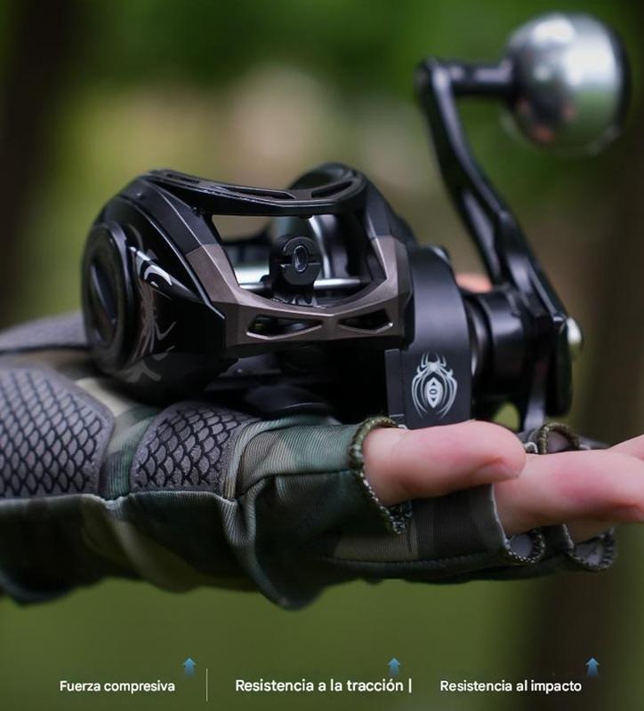 Diseño “Spider” audaz y detallado. Construcción metálica interna reforzada con manijas de fuerza y freno magnético. Incluye alarma de pique. Un reel tan resistente como impresionante.
