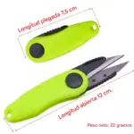 Diseño innovador, super compacto (7.5cm). Hoja de acero inoxidable que corta multifilamento y nylon de una pasada sin deshilachar. Incluye protector de seguridad. Colores vibrantes. ¡Imprescindible!
