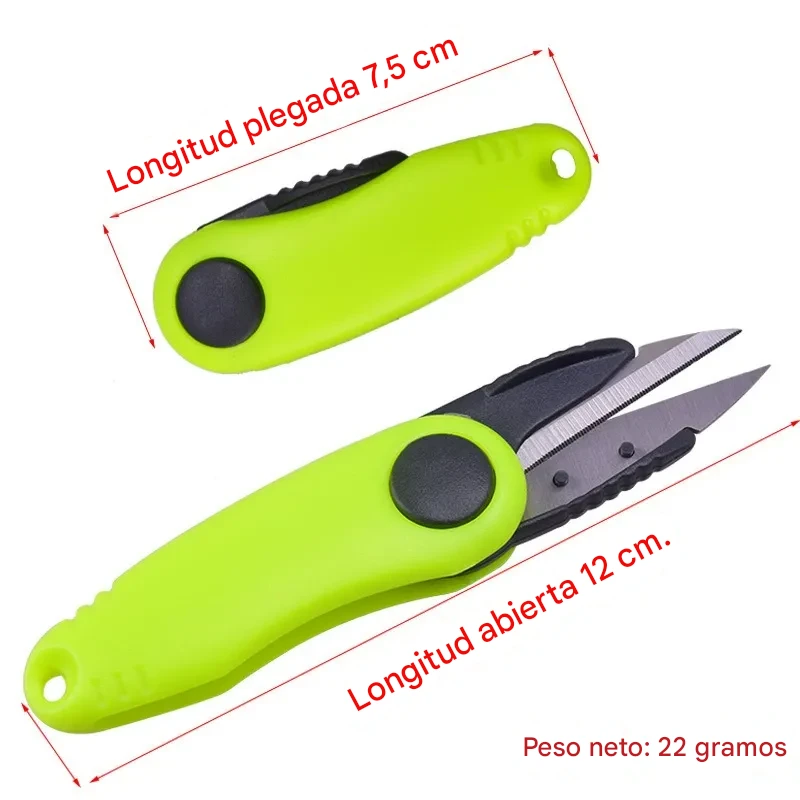 Revolucioná tu caja de herramientas con esta tijera de diseño, creada para el pescador moderno que valora la eficiencia, la seguridad y el espacio. Con un formato único y super compacto (solo 7.5 CM o 12 cm abierta ), cabe en cualquier rinconcito de tu chaleco, bolso o incluso en el bolsillo, estando siempre lista para la acción.
